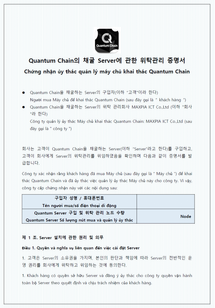 MAXPIA ICT Co., Ltd., đơn vị lắp đặt và quản lý máy chủ khai thác QCC, đã được chứng nhận là có viện nghiên cứu doanh nghiệp bởi cơ quan chính phủ Hàn Quốc vào tháng 4 năm 2022 và đang vận hành viện này, đồng thời cũng sở hữu bằng sáng chế về blockchain.